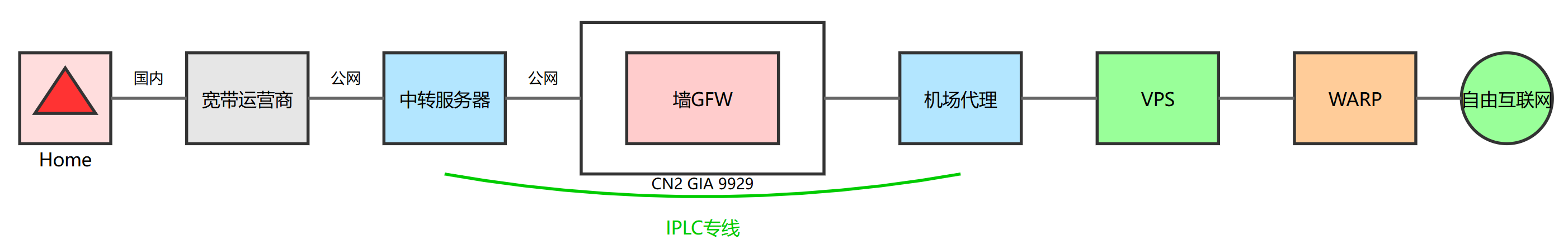 本方案主要分为三个层次:IPLC专线层、VPS中继层和WARP外层。