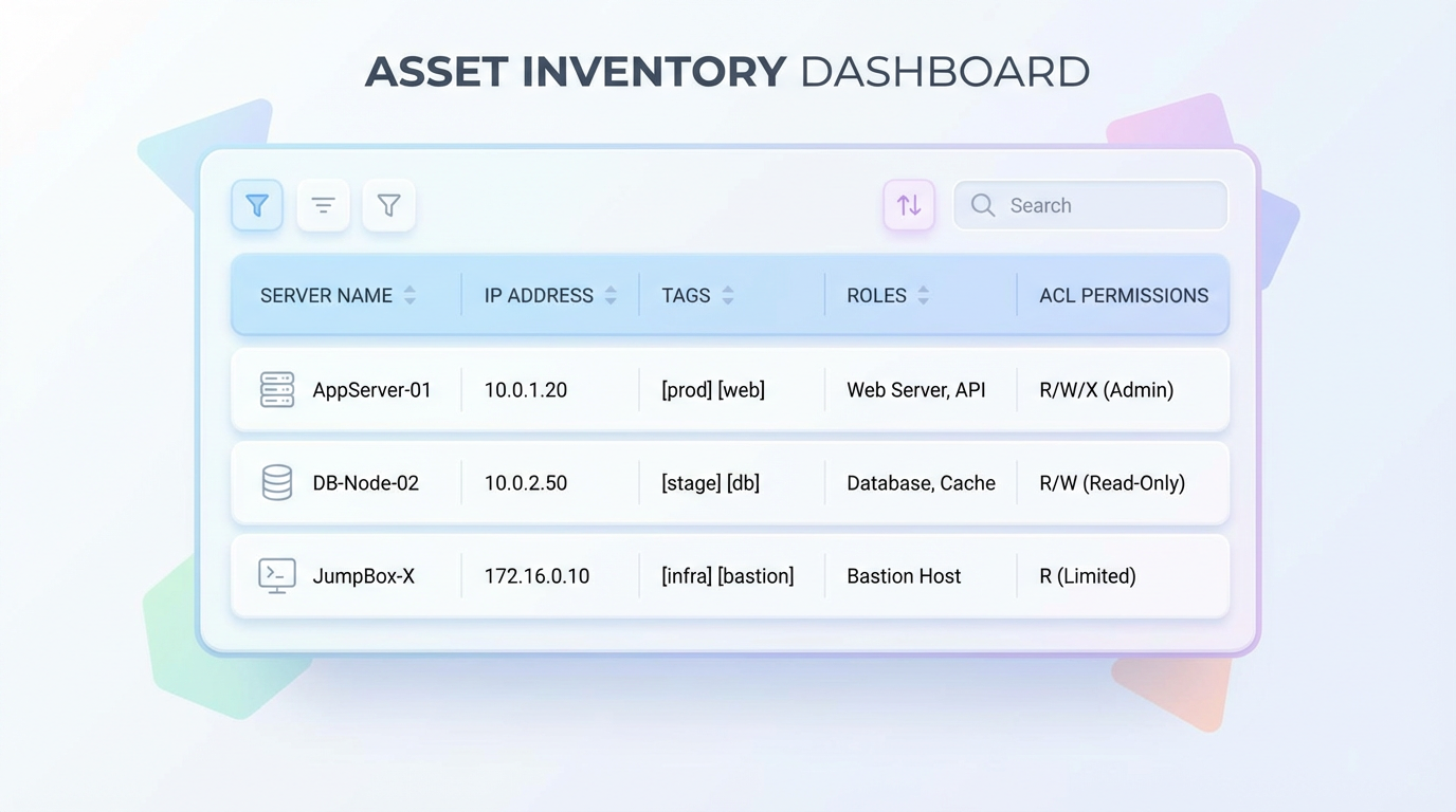 - 有一份资产清单作为事实来源:主机名、用途、公网 IP、Tailscale IP、角色、标签